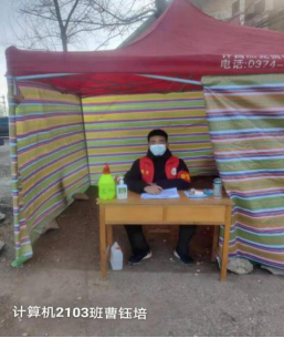 計算機(jī)212班班長秦佳豪,211班的武科遠(yuǎn),214班團(tuán)支書郭志超,215班張鎮(zhèn)江,社康211班的張向陽同學(xué),計算機(jī)213團(tuán)支書曹鈺培,民航211、212班賀義松、陳超、馮標(biāo)棟、陳村杰等在假期中積極參與家鄉(xiāng)防疫工作,每天早起值班,維護(hù)交通秩序,堅守崗位,為建設(shè)平安家鄉(xiāng)做出突出貢獻(xiàn)。自身能力有了一定的提升,也為青少年樹立了榜樣,在疫情中堅守初心,在防控中擔(dān)當(dāng)使命。他們辛苦的站崗值班,換來了家鄉(xiāng)豐盛的午飯,美味的蛋糕,晴朗的天空和最親的家人。